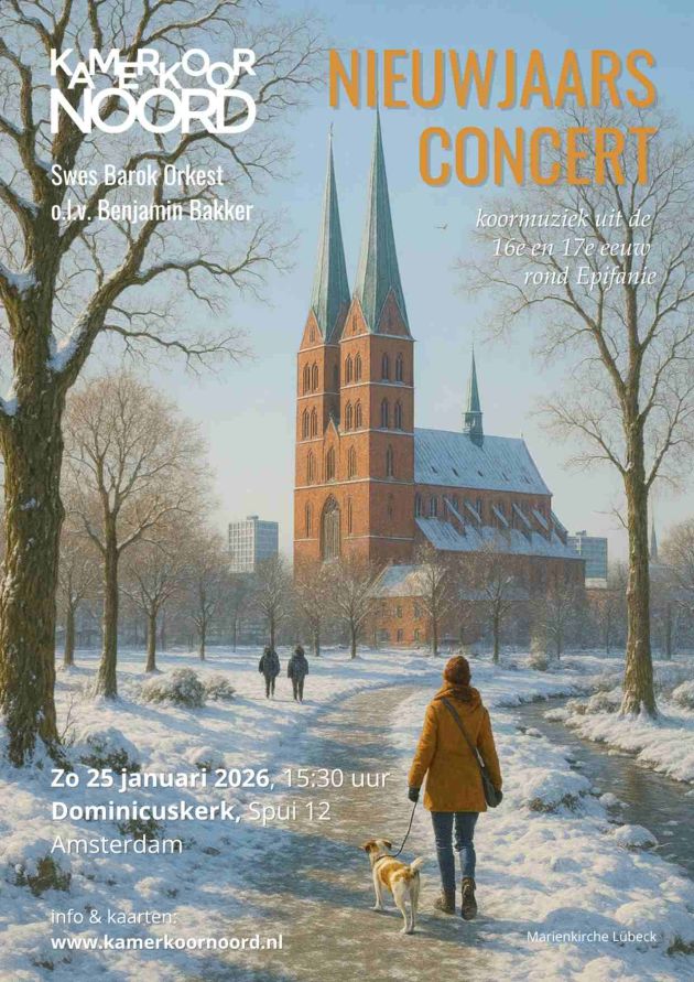 Informatie: Kamerkoor Noord zingt op 25 januari een nieuwjaarsconcert in de Dominicuskerk van Amsterdam in samenwerking met het Swes Barok orkest o.l.v. Benjamin Bakker.
