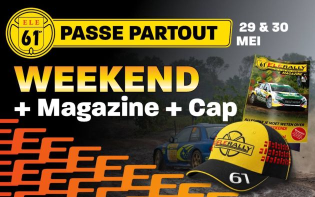 "Toegang tot alle proeven tijdens het 61e ELE weekend + het officiële magazine van de ELE Rally incl. proevenkaarten, uitgebreid tijdschema, achtergrondinformatie, deelnemerslijst en de 2026 ELE Cap"