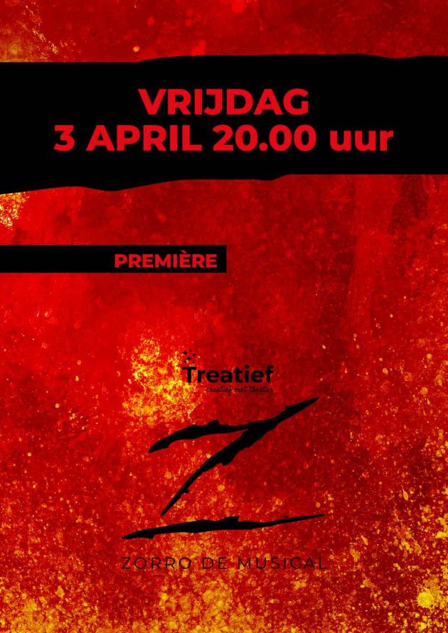 Treatief brengt Zorro de Musical! Een spannende, meeslepende en swingende musical over Diego, een knappe, charmante jongeman met een onstuimig en rebels karakter. Samen met de prachtige zigeunerin Inez reist hij door het land, waar hij bekend wordt als “El Californiano”. Zijn spectaculaire stunts als illusionist maken hem al snel een legende.