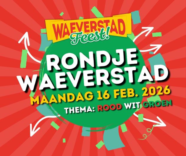 Op maandag 16 februari 2026: Rondje Waeverstad. De enige echte kroegentocht in Waeverstad. Acht drankjes, zeven locaties, één groot feest, met als thema 'ROOD-WIT-GROEN'. Doe mee en ervaar Waeverstad op z’n best!