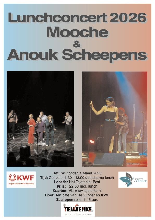 Informatie: Met enige trots mogen we aankondigen dat wij opnieuw kunnen genieten van Vocal group Mooche en Anouk Scheepens tijdens het lunchconcert 2026.